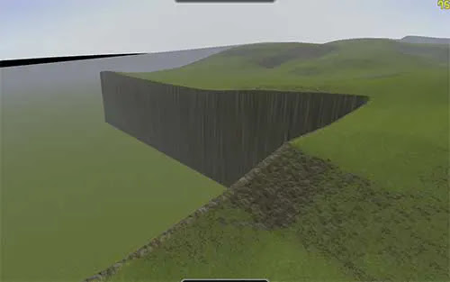 Po potrebi promijenite poziciju kamere prema gore (CTRL+Up Arrow) kako biste vidjeli svoj sada već dijelom konfigurirani teren. Za proširivanje terena primaknite se rubu već napravljenog i ponovno pritisnite T. Vidjet ćete kako se dodaju blokovi. Također će vam najvjerojatnije scenario marker sada ostati na krivoj nadmorskoj visini pa ćete i njega morati poravnati sa površinom terena. Kako to izgleda vidite na slici ispod: